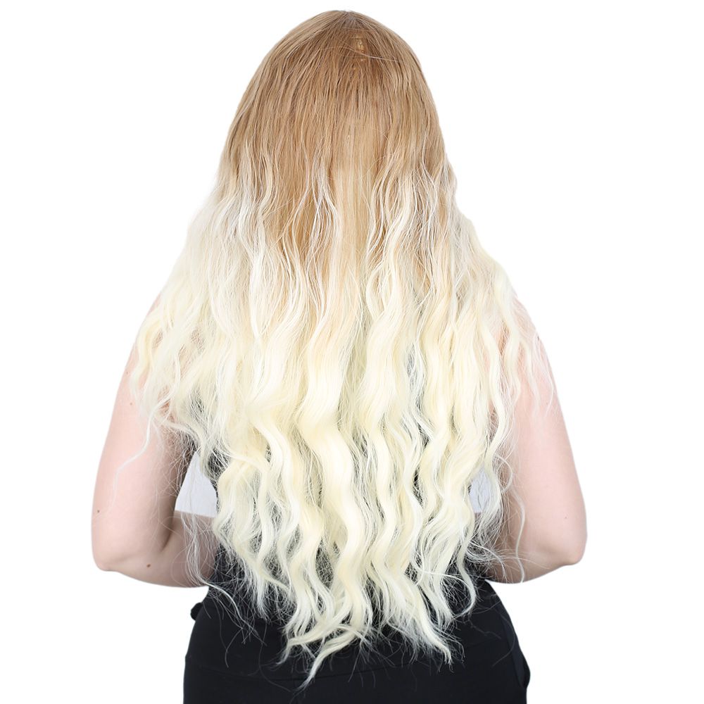 Su Dalgası Uzun Perçemsiz Fiber Sentetik Peruk - Balköpüğü / Platin Orta Ombreli