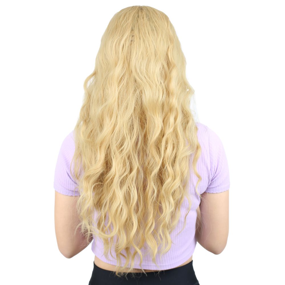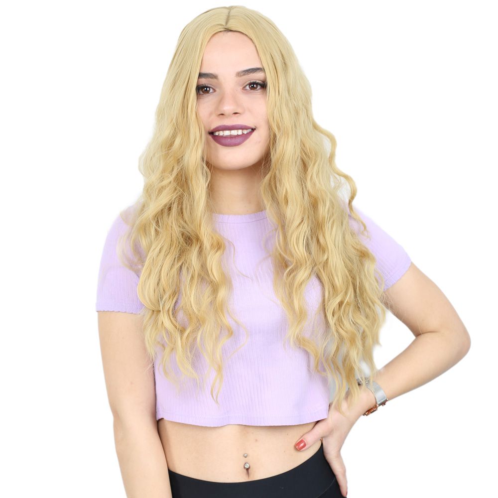 Su Dalgası Uzun Perçemsiz Fiber Sentetik Peruk - Sarı