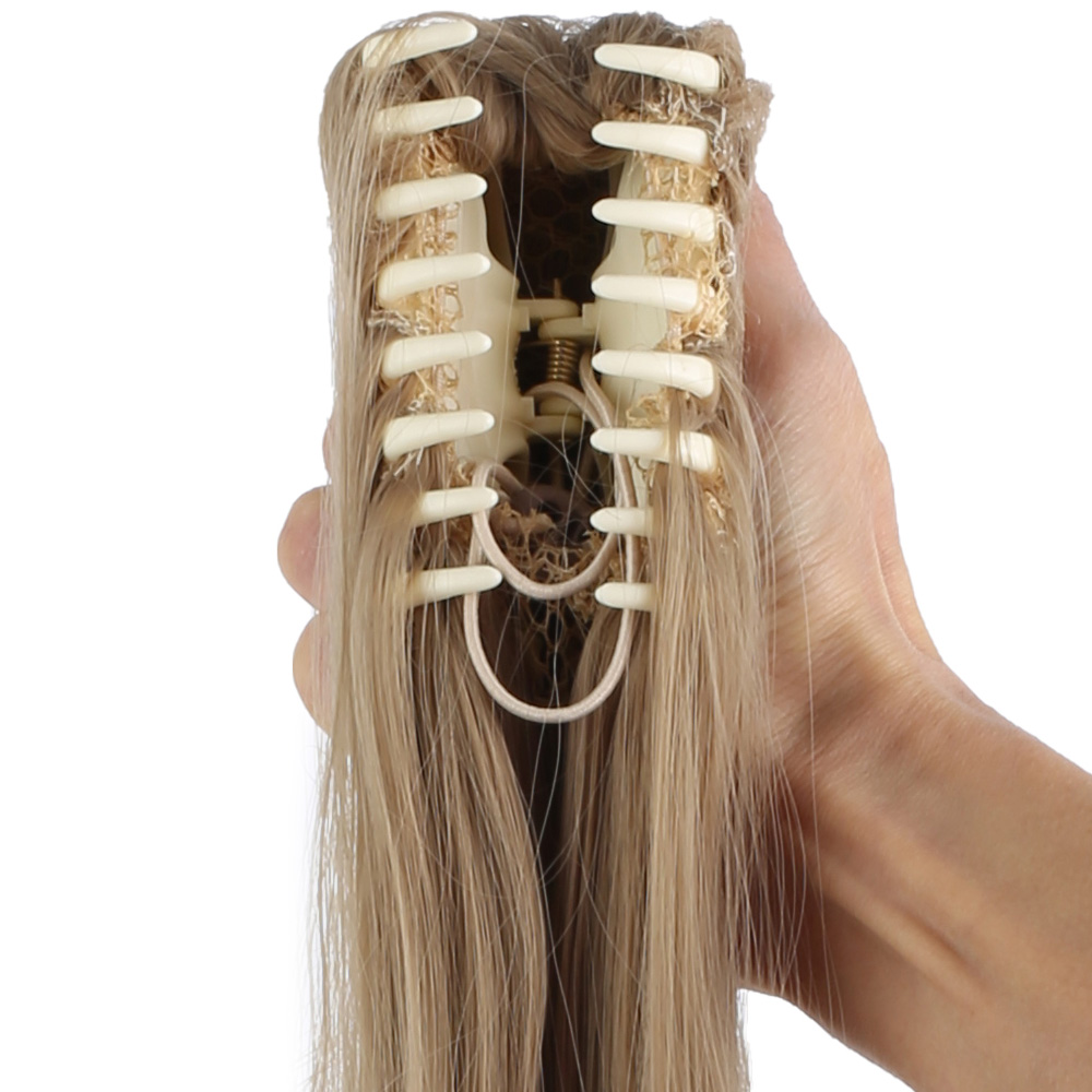 Saçınızı topladıktan sonra, at kuyruğunun tokalı kısmını saçınıza kıstırarak kullanabilirsiniz.