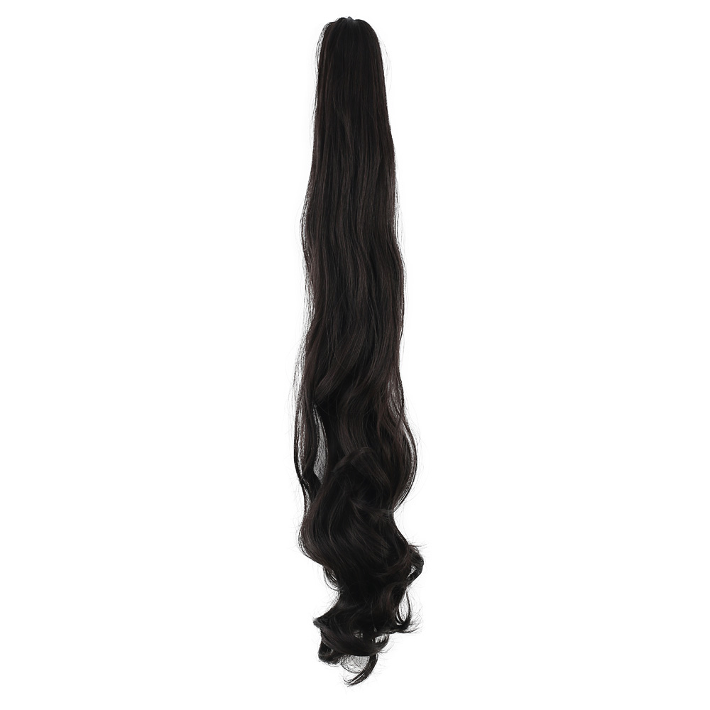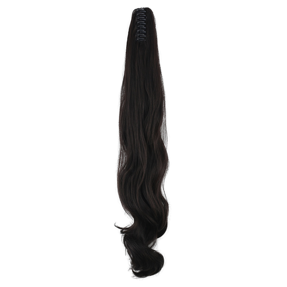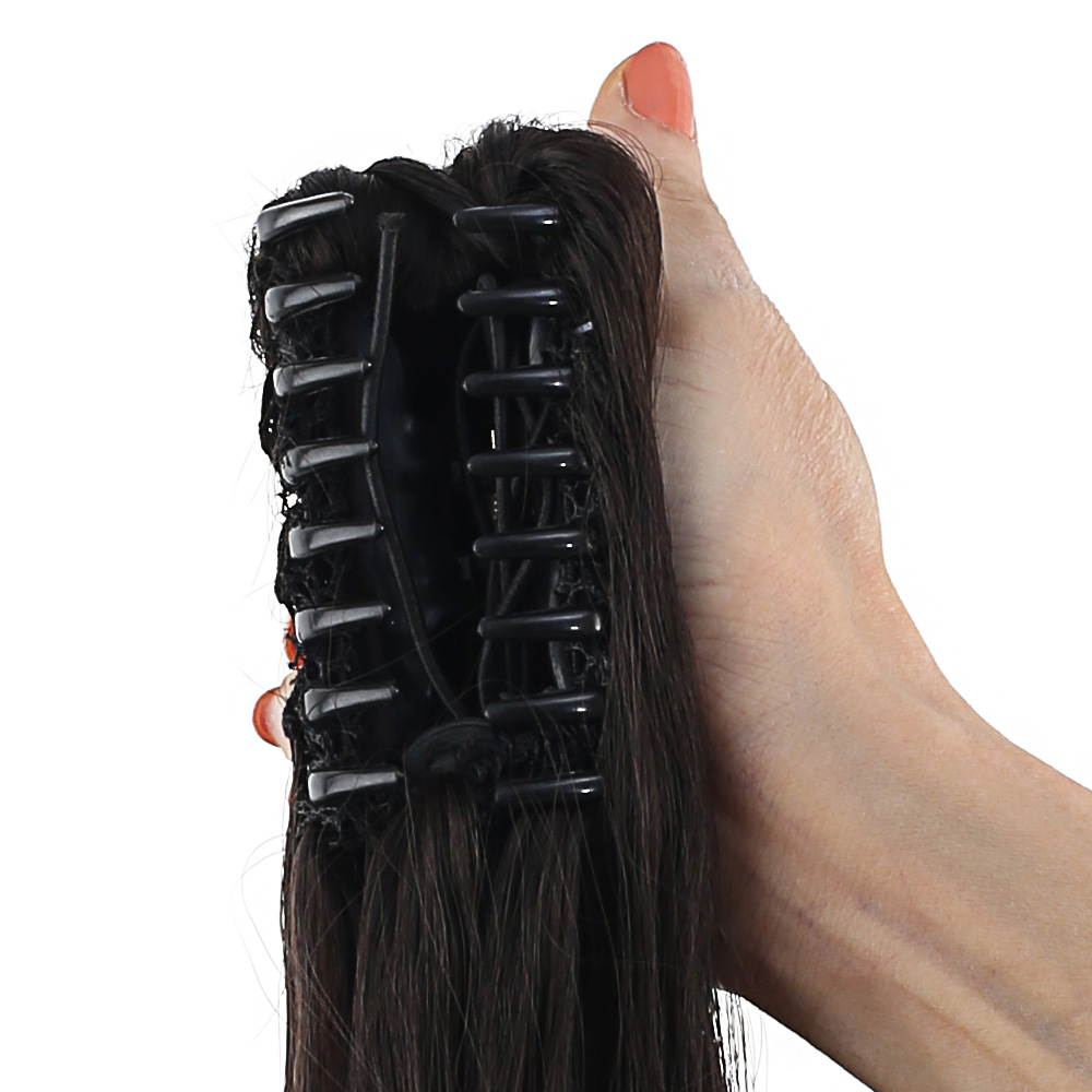 Üçlü Örgülü Tokalı Bağlamalı At Kuyruğu - Koyu Kestane