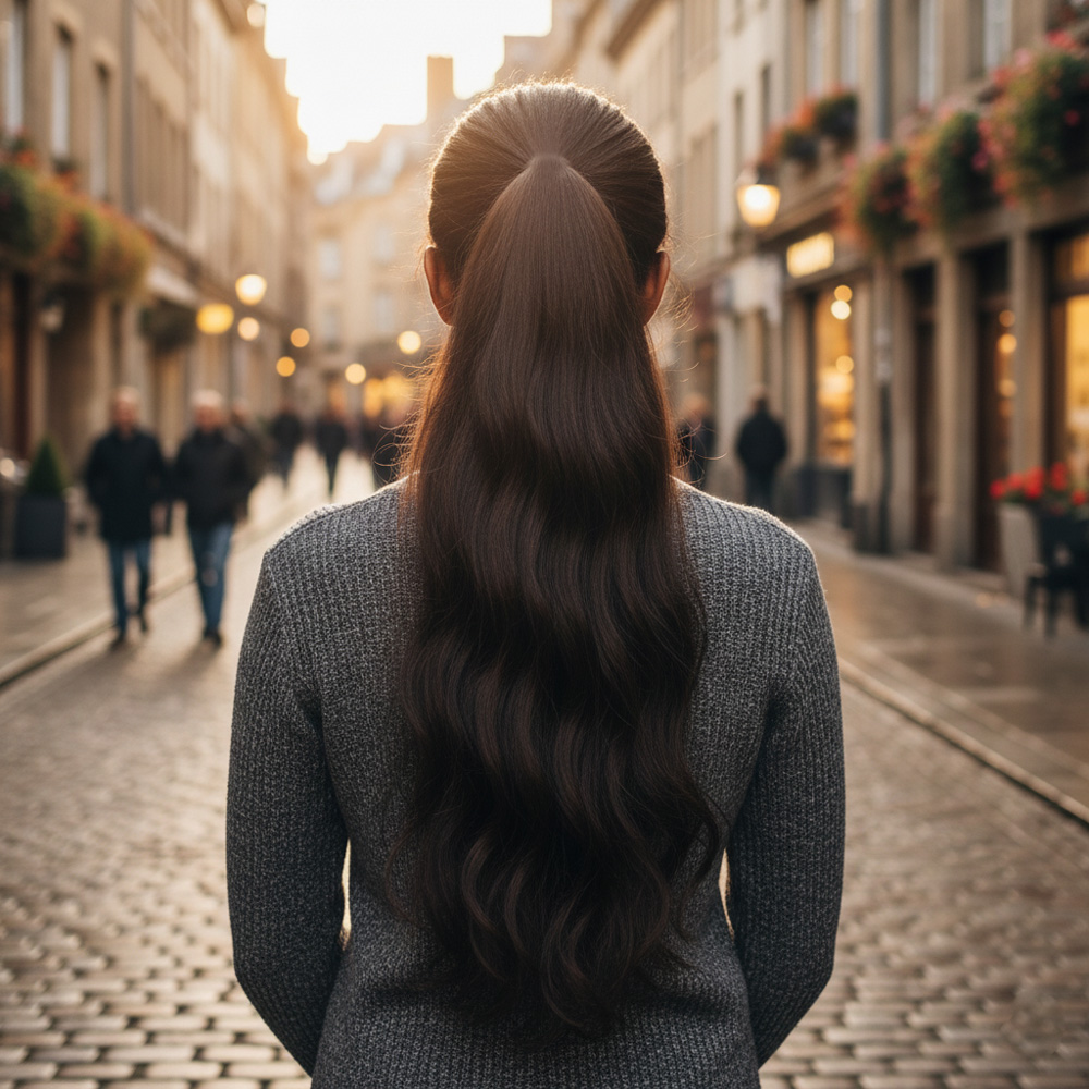 Üçlü Örgülü Tokalı Bağlamalı At Kuyruğu - Kahverengi