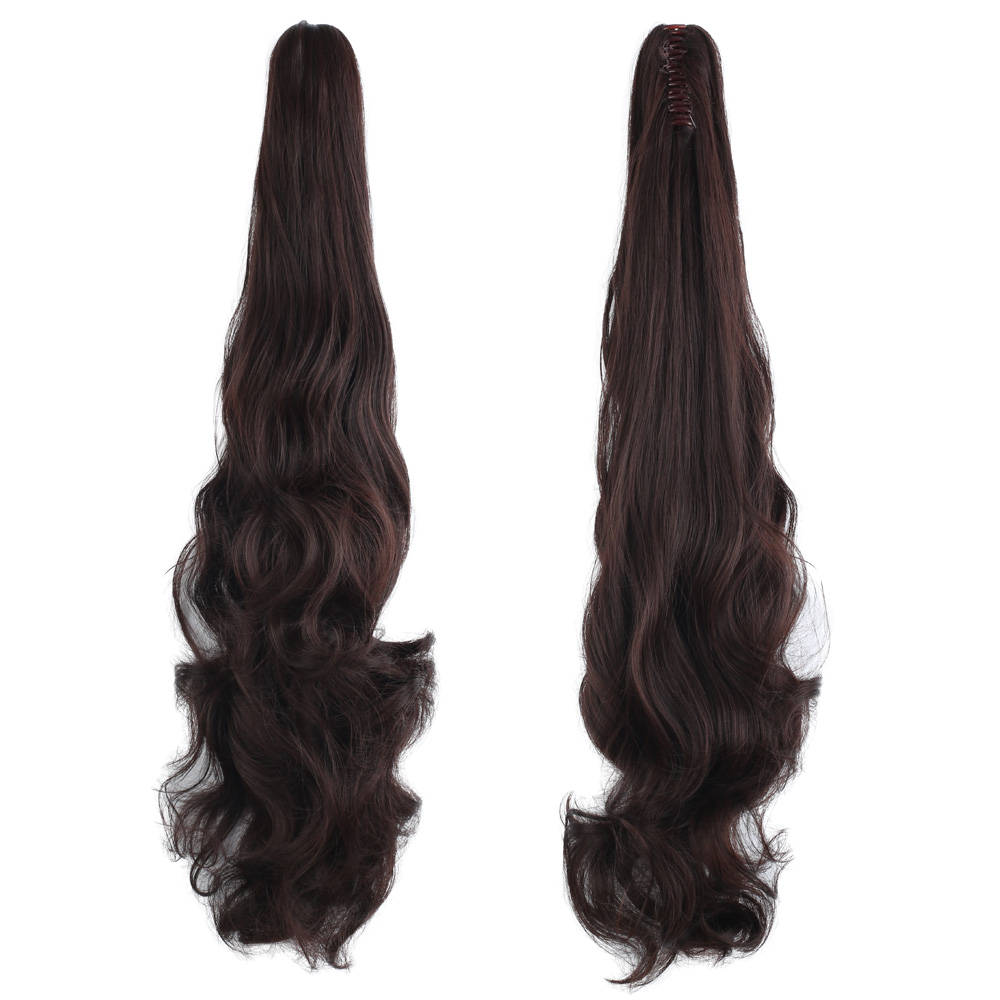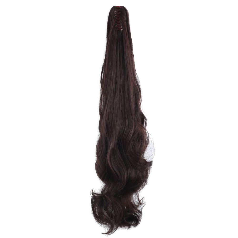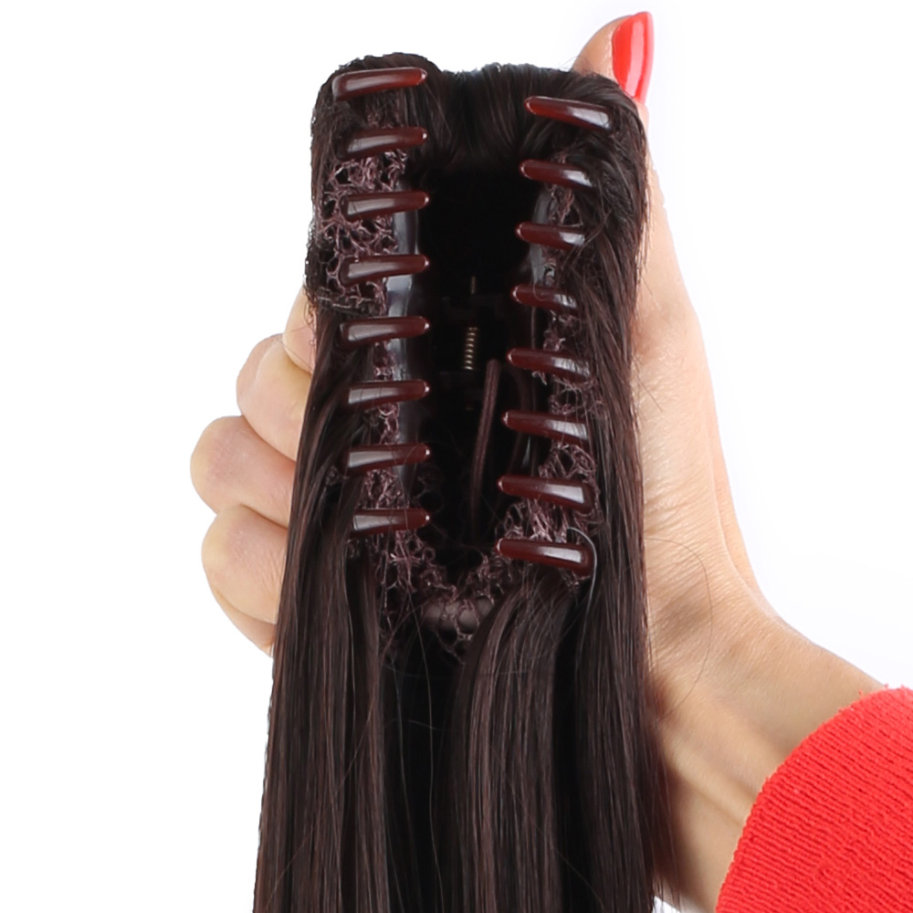 Üçlü Örgülü Tokalı Bağlamalı At Kuyruğu - Koyu Kestane
