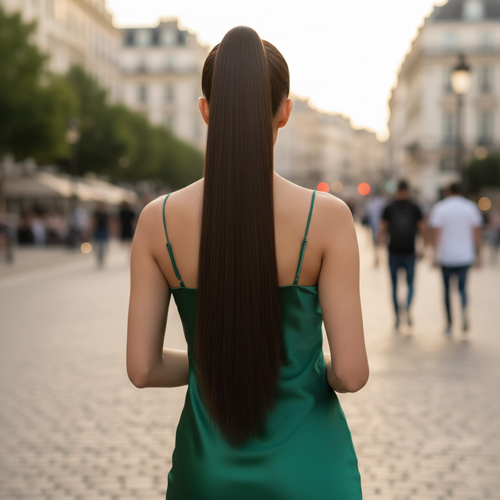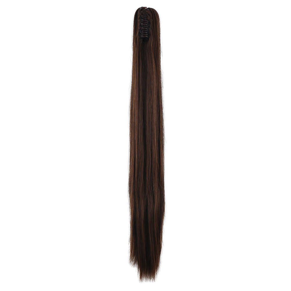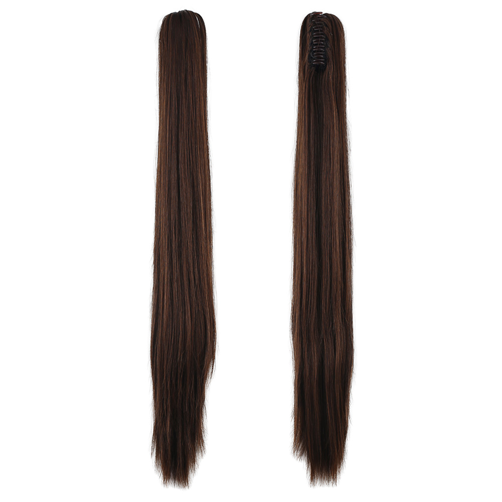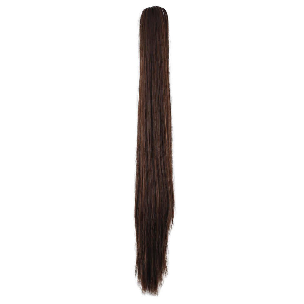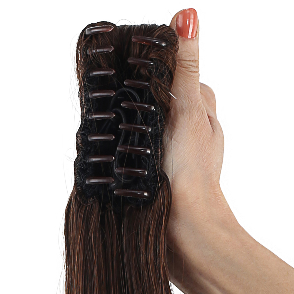 Üçlü Örgülü Tokalı Bağlamalı At Kuyruğu - Koyu Kestane
