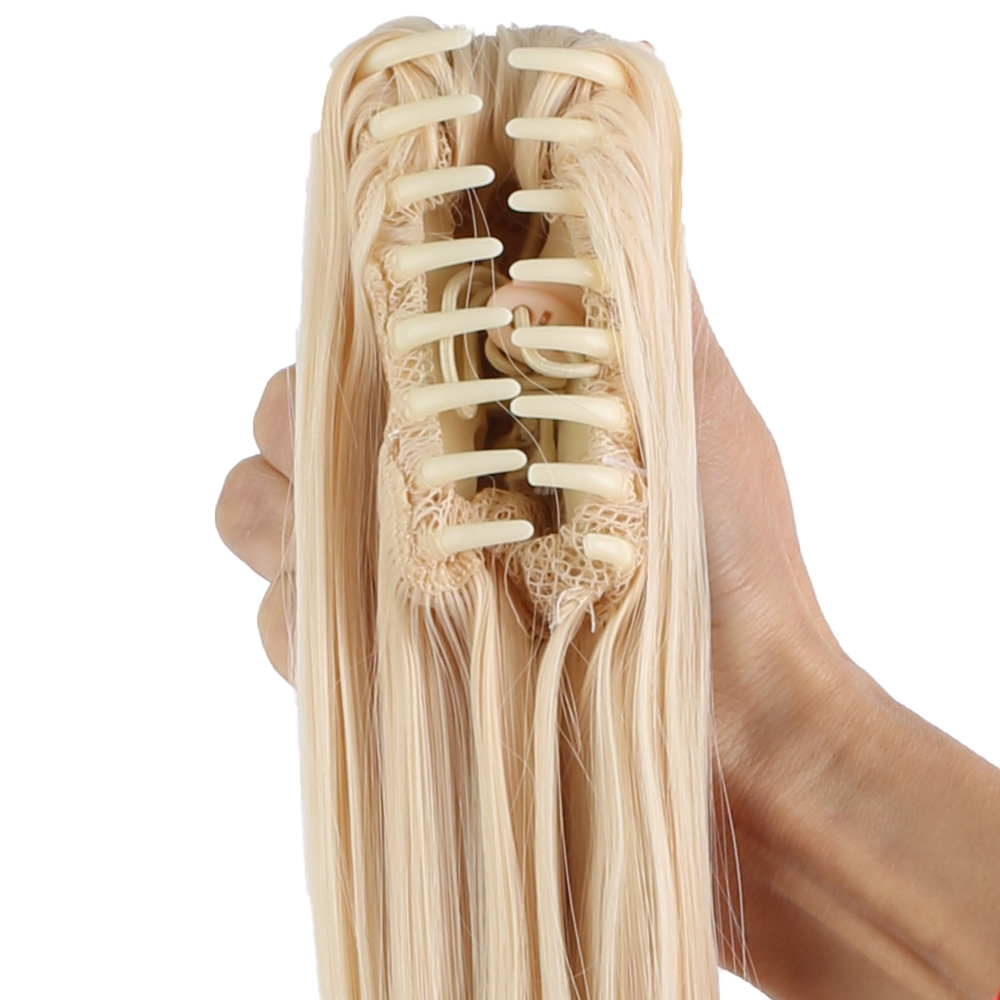 Tokalı Kuyruklu Dağınık Topuz - Açık Kumral Çiğ Dore Sarı Röfleli