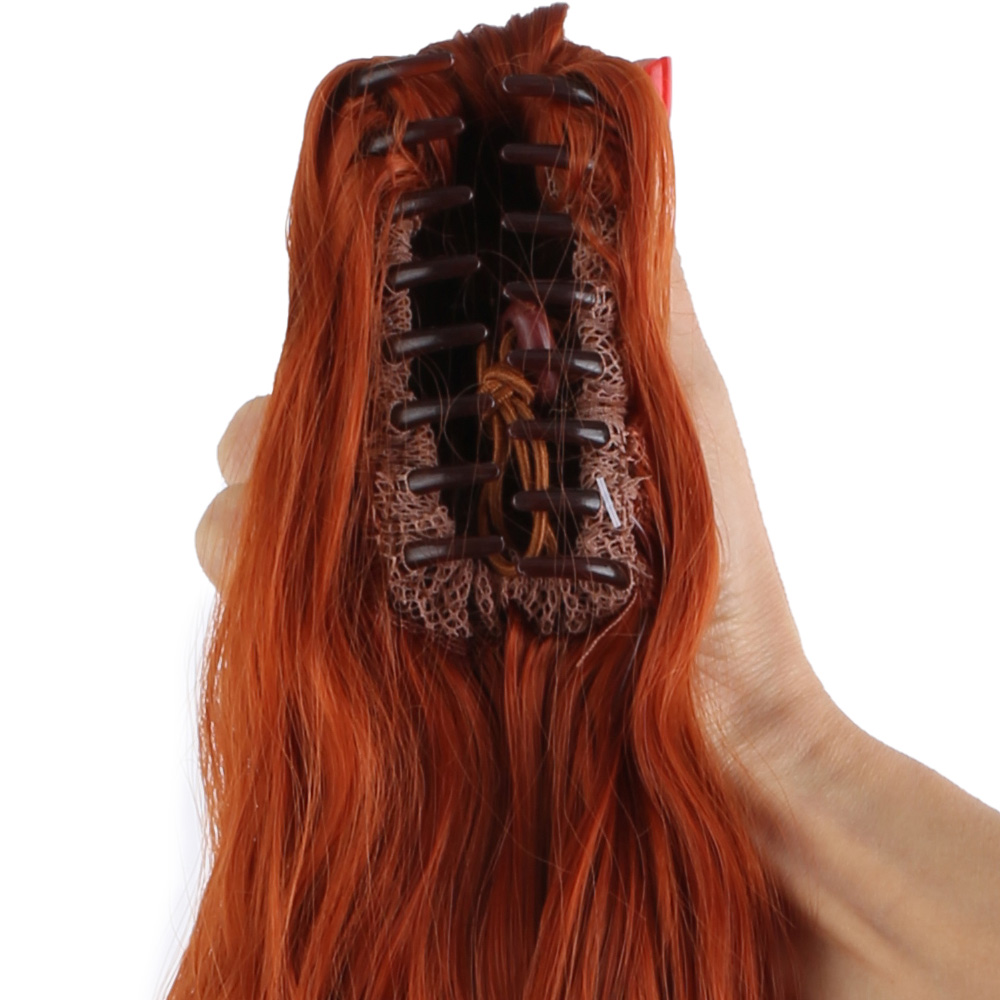 Üçlü Örgülü Tokalı Bağlamalı At Kuyruğu - Koyu Kestane