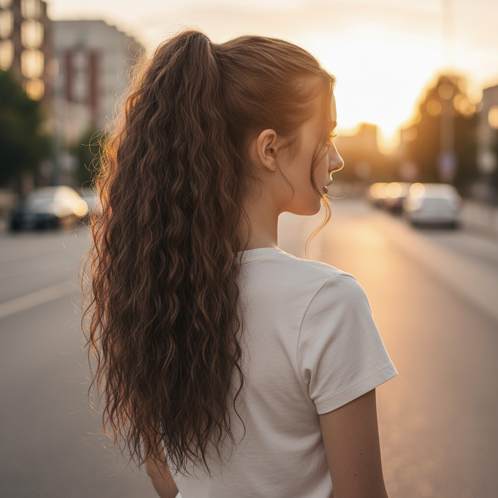Tokalı Kabarık Dalgalı At Kuyruğu - Kahve Karamel