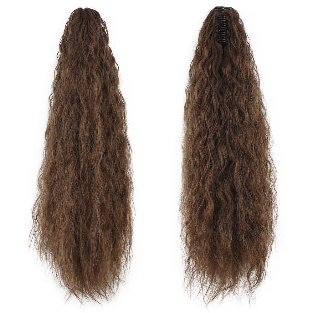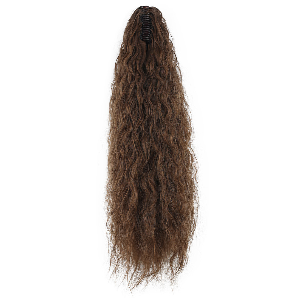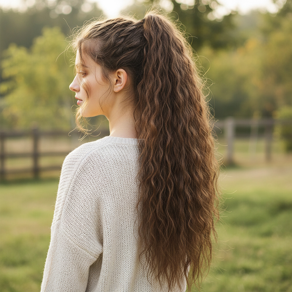 Üçlü Örgülü Tokalı Bağlamalı At Kuyruğu - Kahverengi