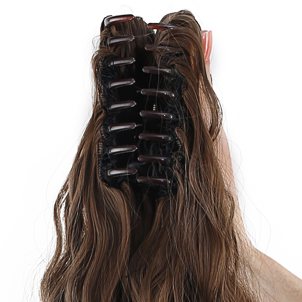 Üçlü Örgülü Tokalı Bağlamalı At Kuyruğu - Koyu Kestane
