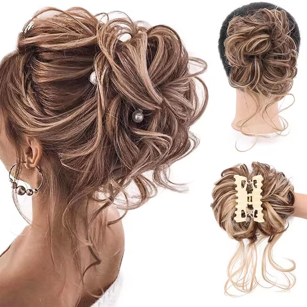 Tokalı Kuyruklu Dağınık Topuz - Açık Kumral Çiğ Dore Sarı Röfleli