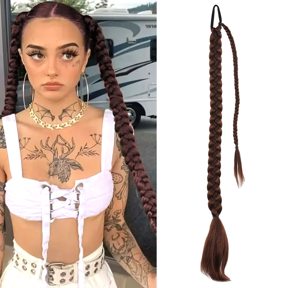 Üçlü Örgülü Tokalı Bağlamalı At Kuyruğu - Çikolata Kahve
