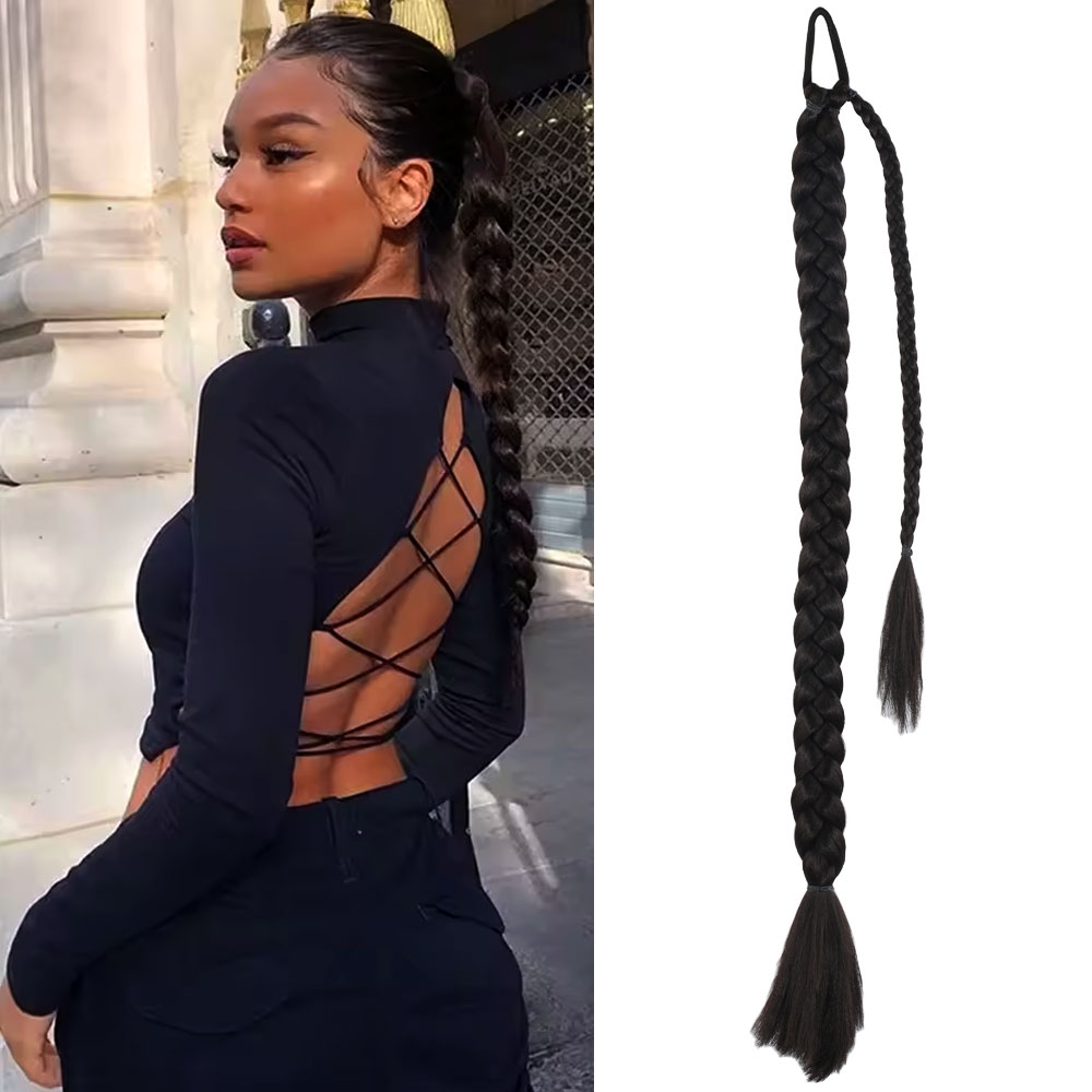 Üçlü Örgülü Tokalı Bağlamalı At Kuyruğu - Koyu Kestane