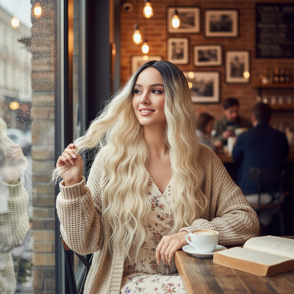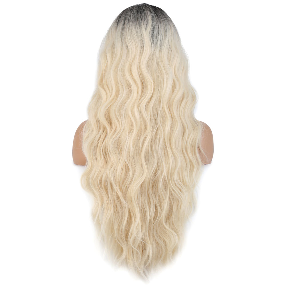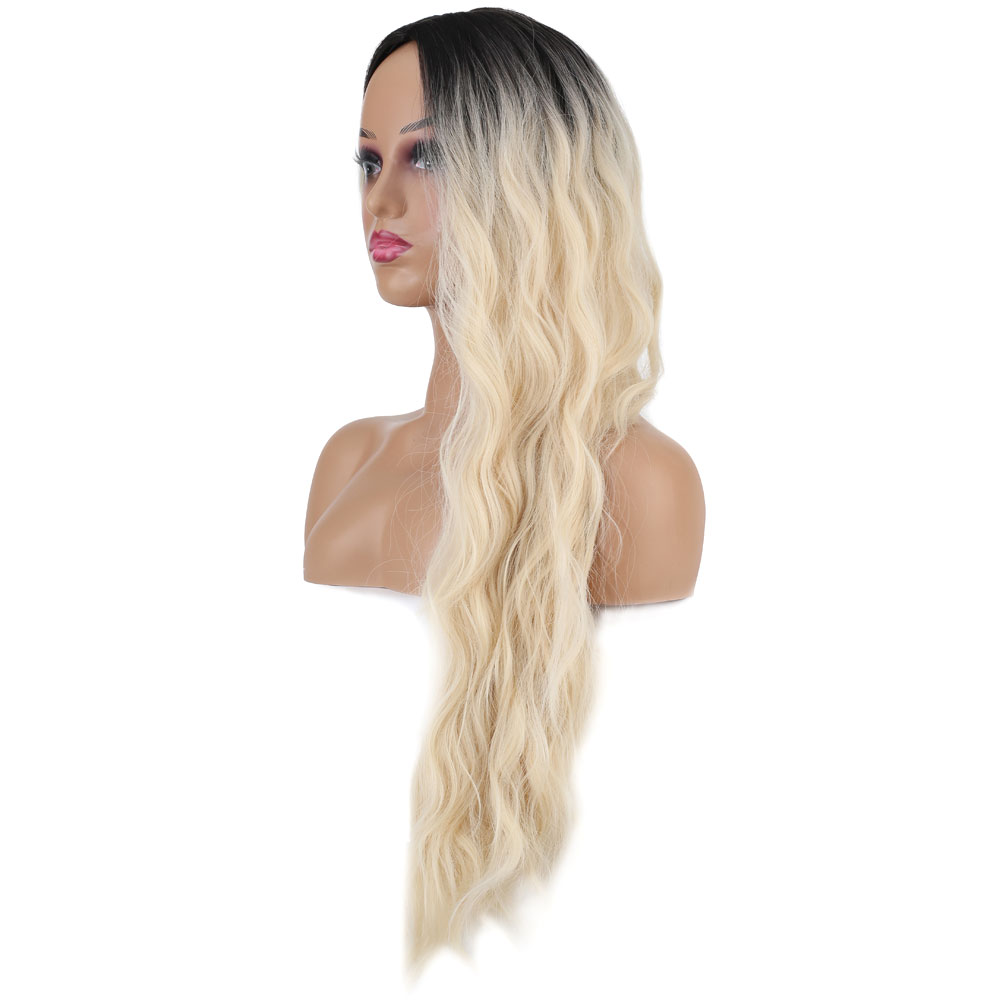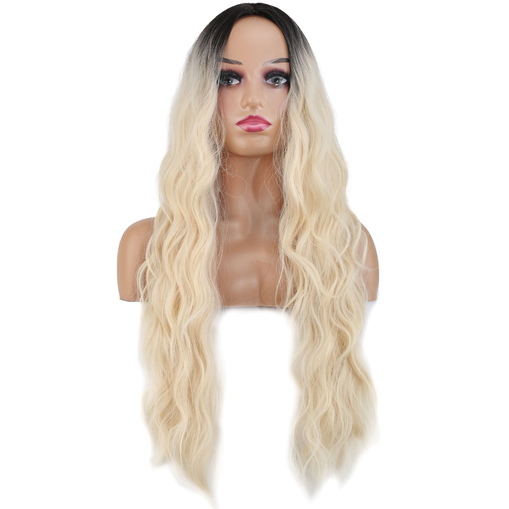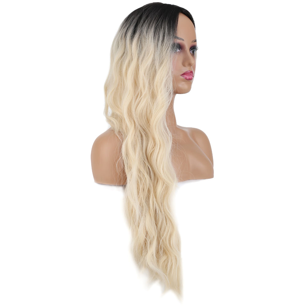 Uzun Su Dalgası Fiber Sentetik Peruk - Kahve / Platin Ombre