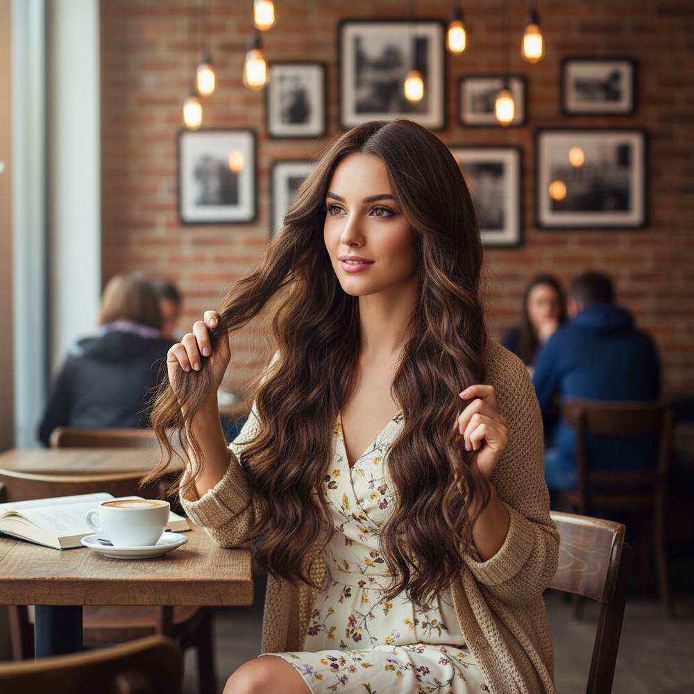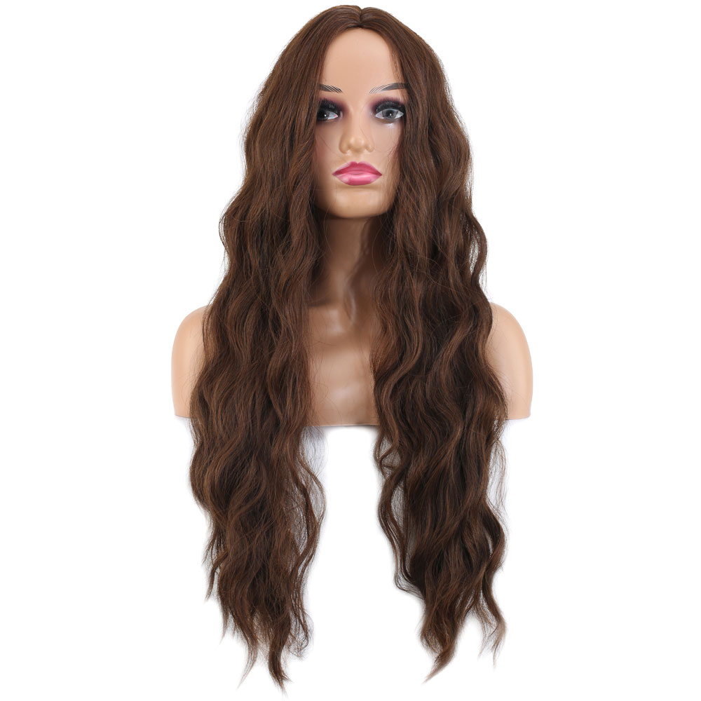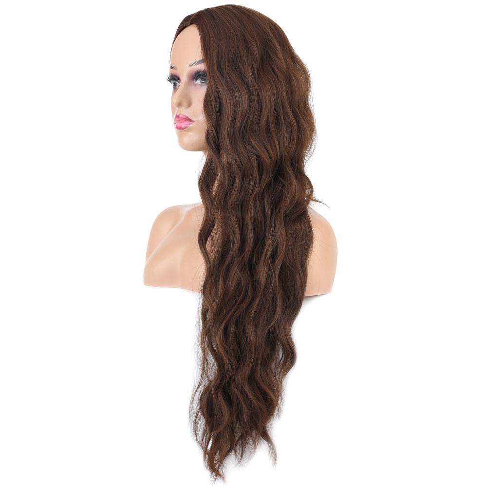 Uzun Su Dalgası Fiber Sentetik Peruk - Kahve Karamel