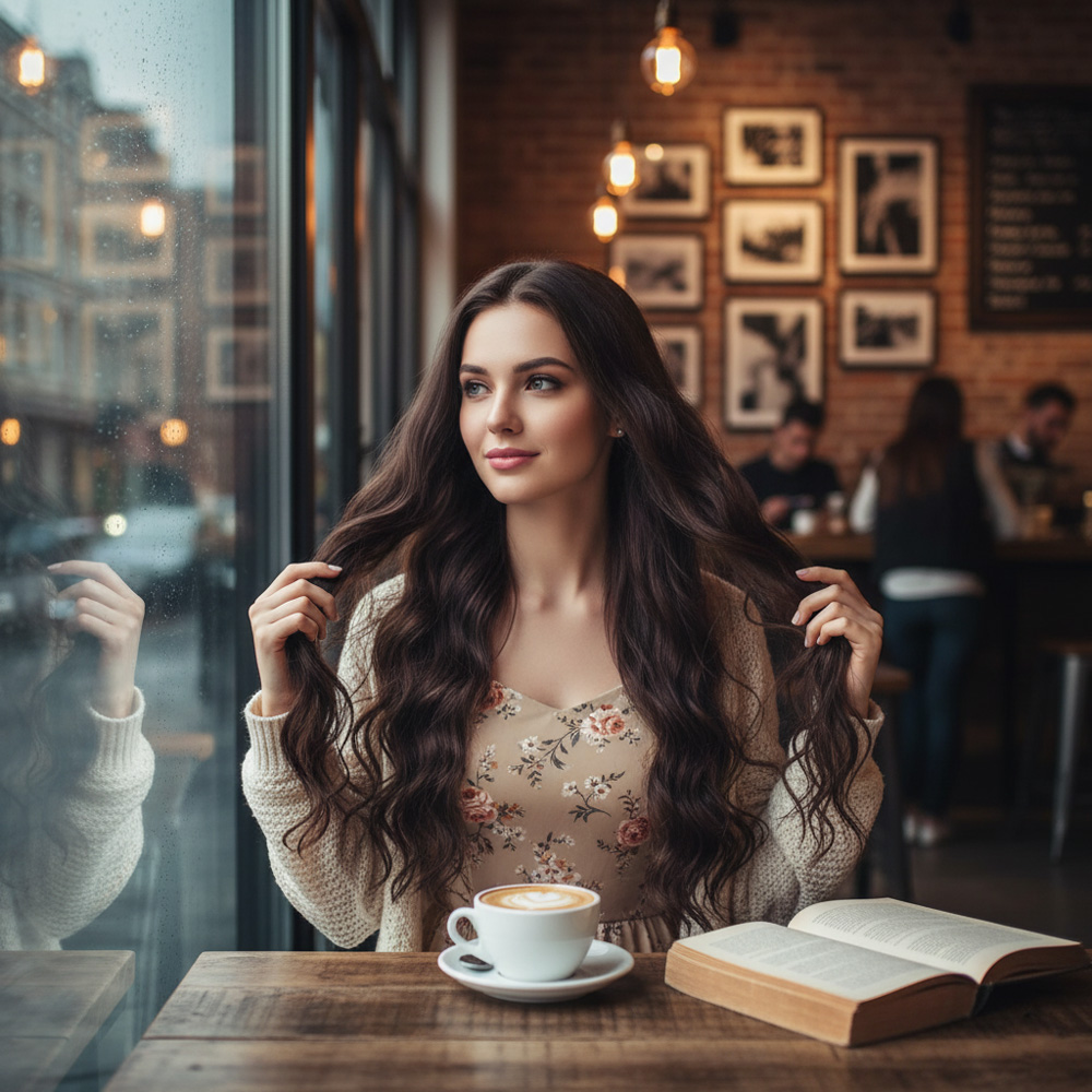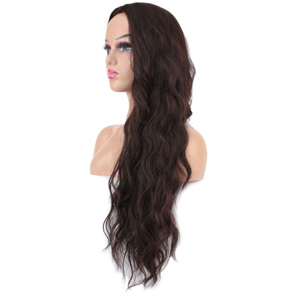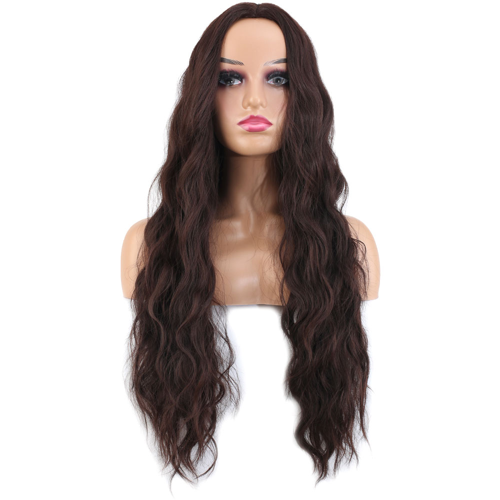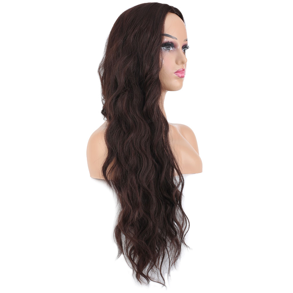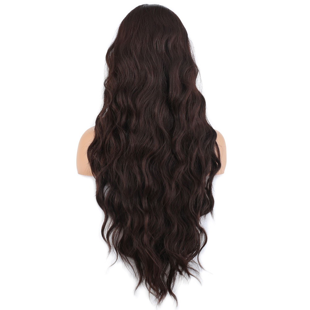 Uzun Su Dalgası Fiber Sentetik Peruk - Kızıl Kahve