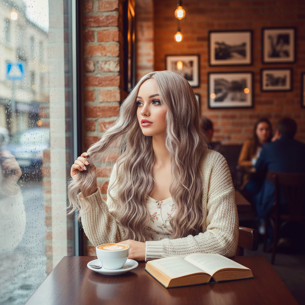 Uzun Su Dalgası Fiber Sentetik Peruk - Küllü Bebek Sarı