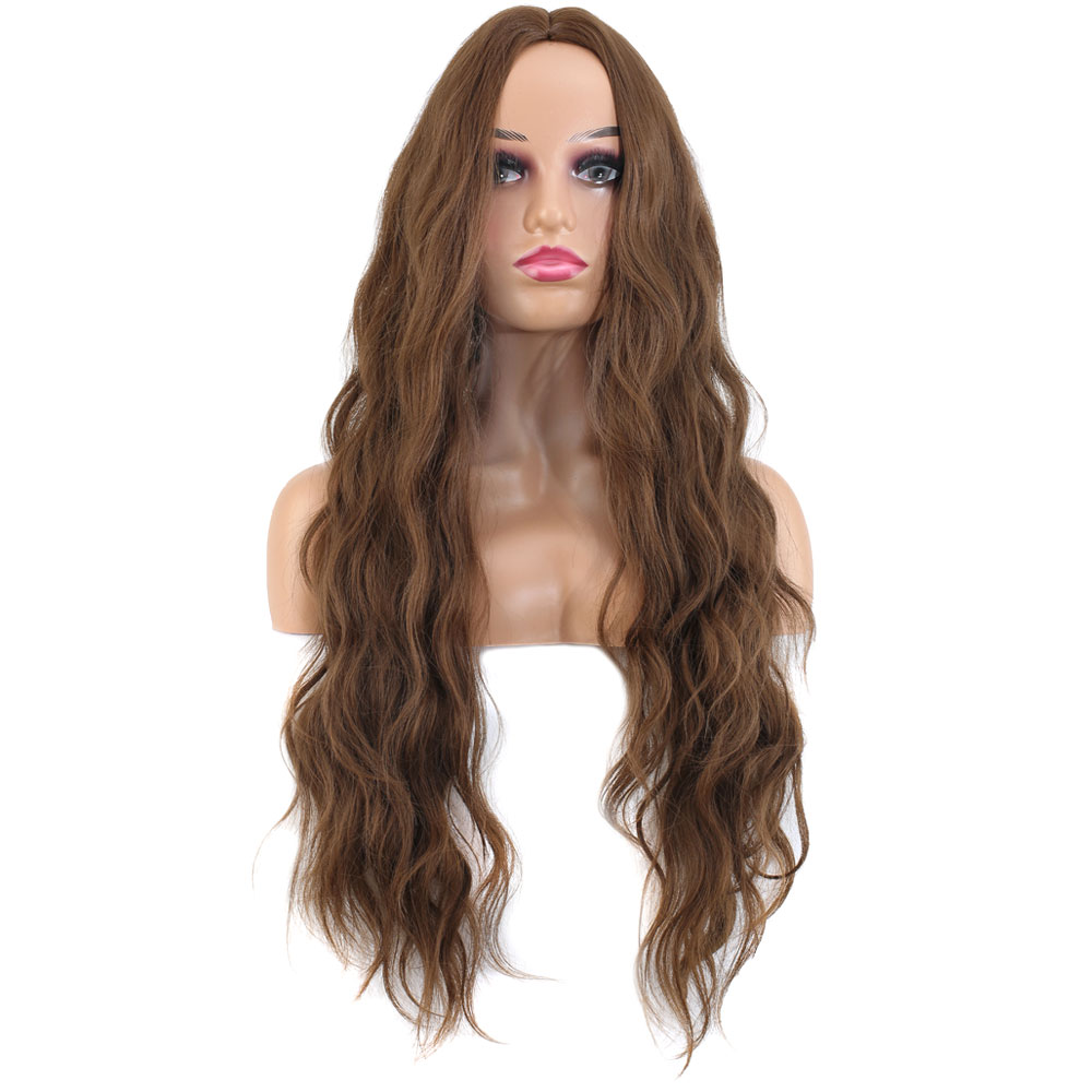 Koyu Kumral Ekstra Uzun Fiber Sentetik Dalgalı Tül Peruk