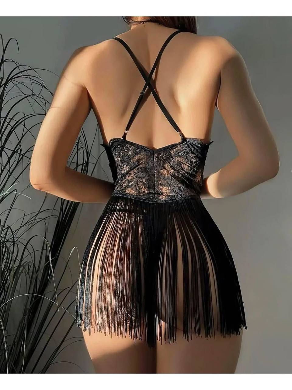 Gecelerine gizem ve ihtişam katmak için tasarlanan püsküllü dantelli gecelik, zarafetiyle göz kamaştırırken cesur detaylarıyla büyüleyici bir etki bırakır.