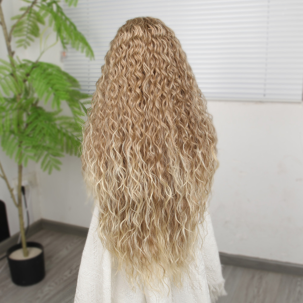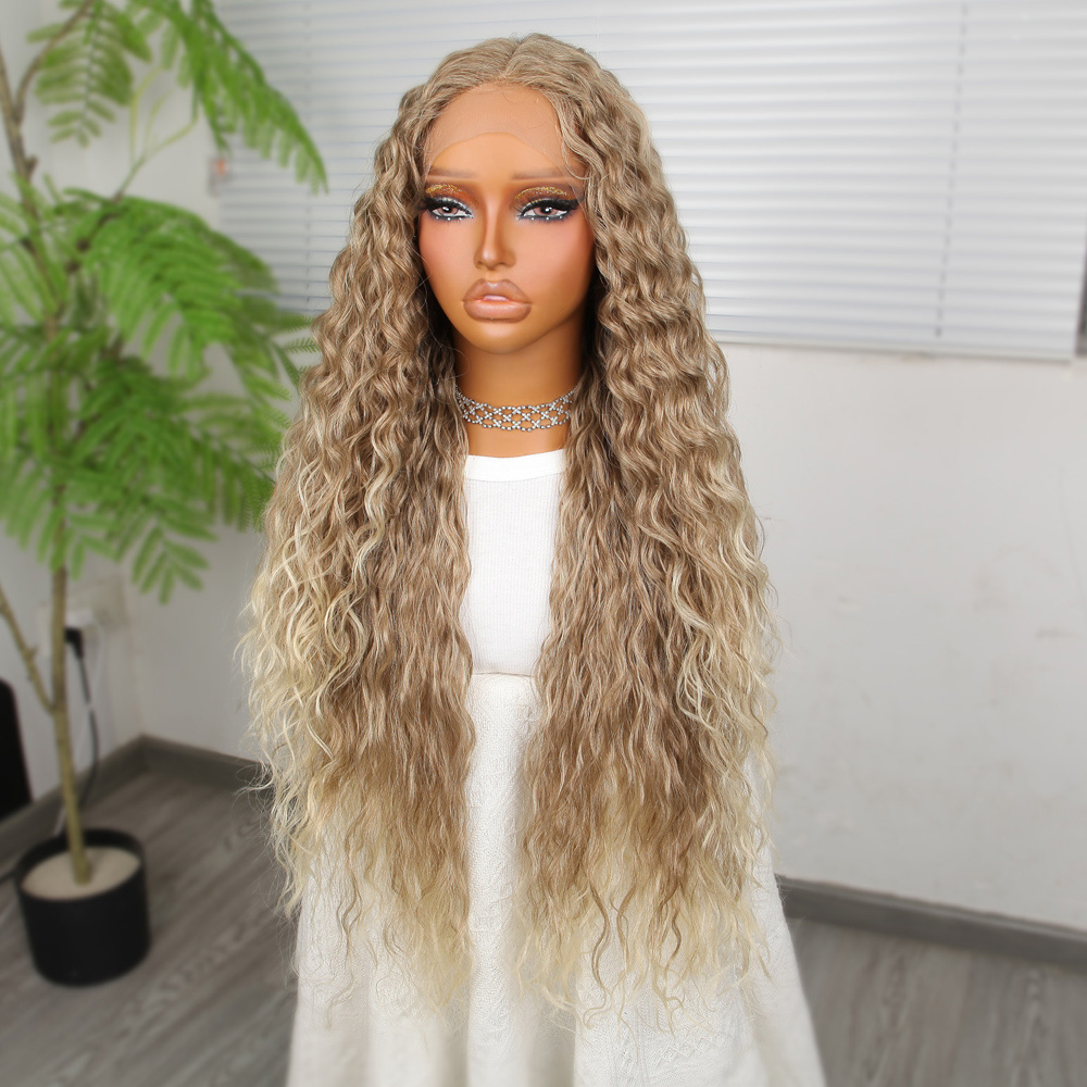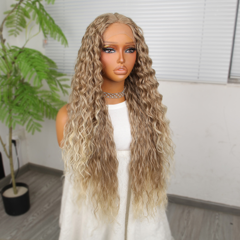 Perçemli Uzun Su Dalgası Fiber Sentetik Peruk- Ombre ve Röfleli