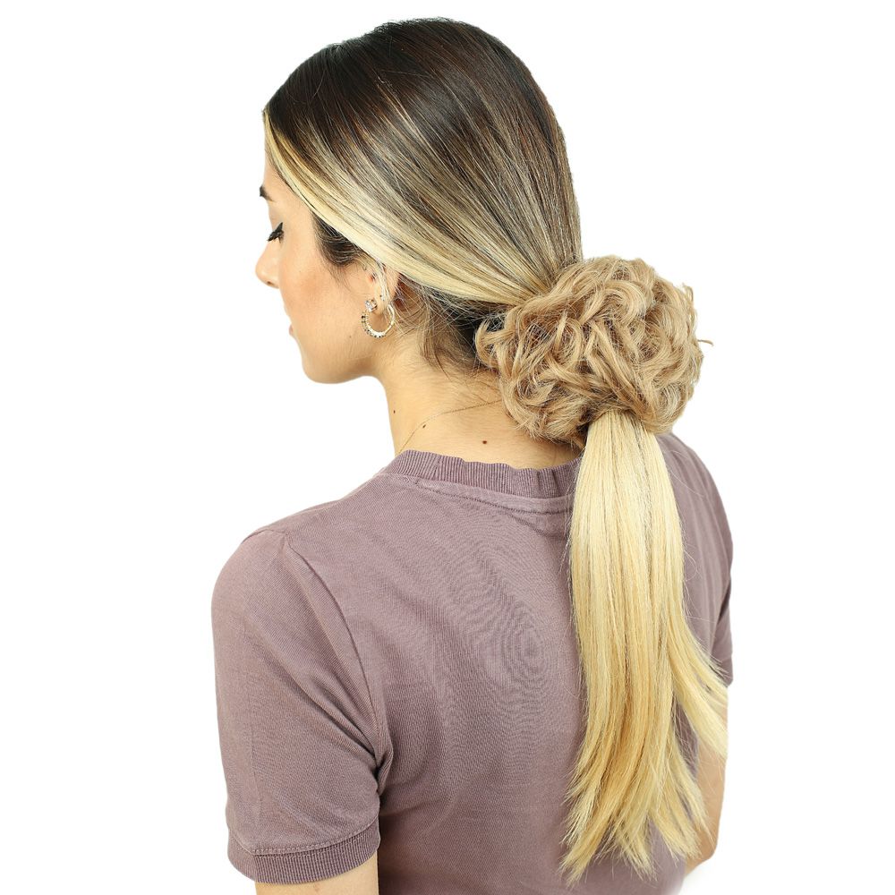 Yoğun Saçlı Lastikli Topuz Toka - Bebek Kumralı