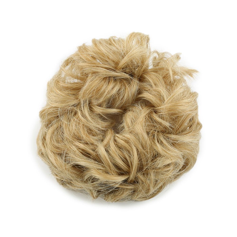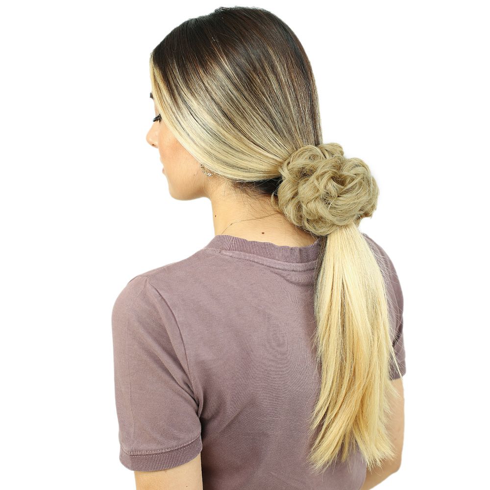 Yoğun Saçlı Lastikli Topuz Toka - Karamel Platin Röfleli